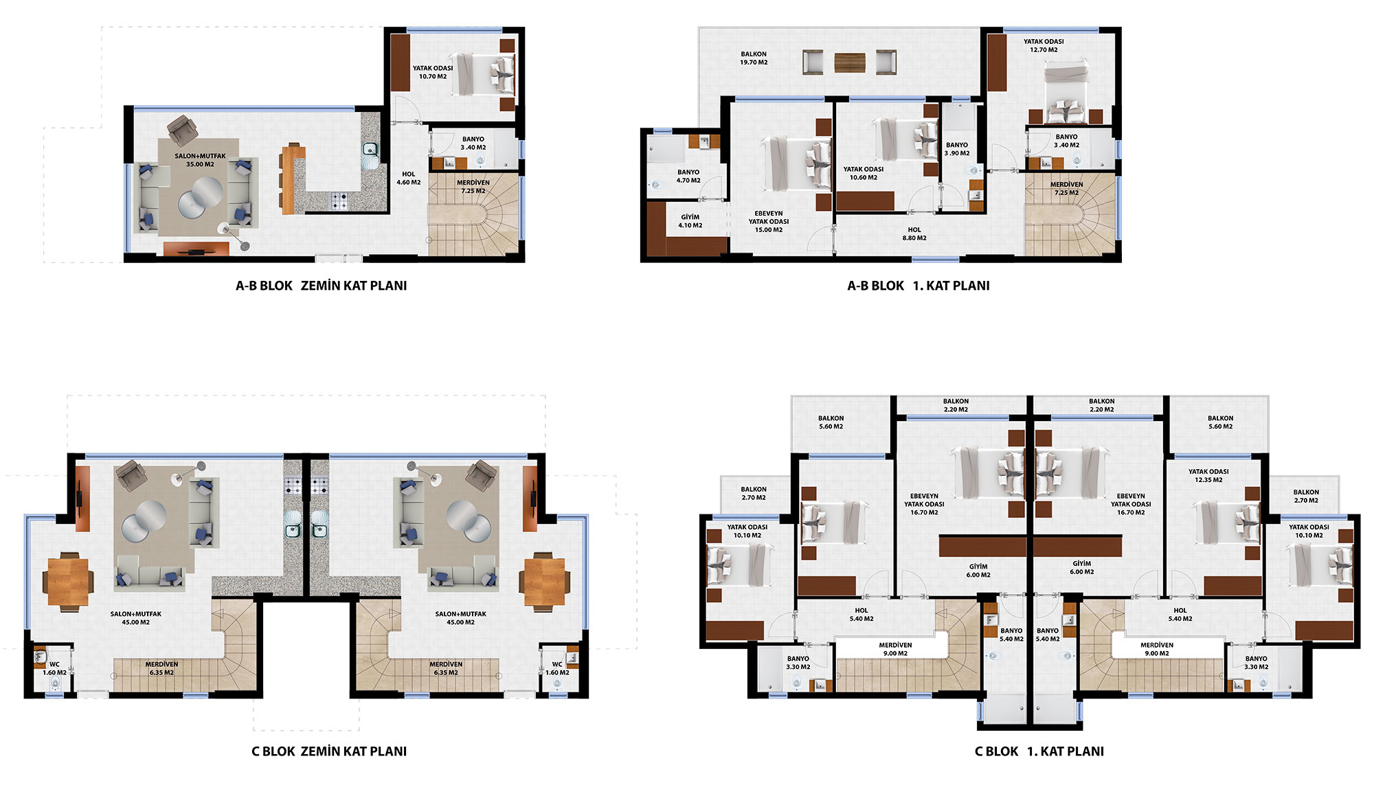 Block C, on the other hand, stands out from the rest with its distinctive features. Covering a closed area of 250m² and an open area of 150m², Block C comes equipped with a sauna, Turkish bath, and resting area for ultimate comfort and relaxation.